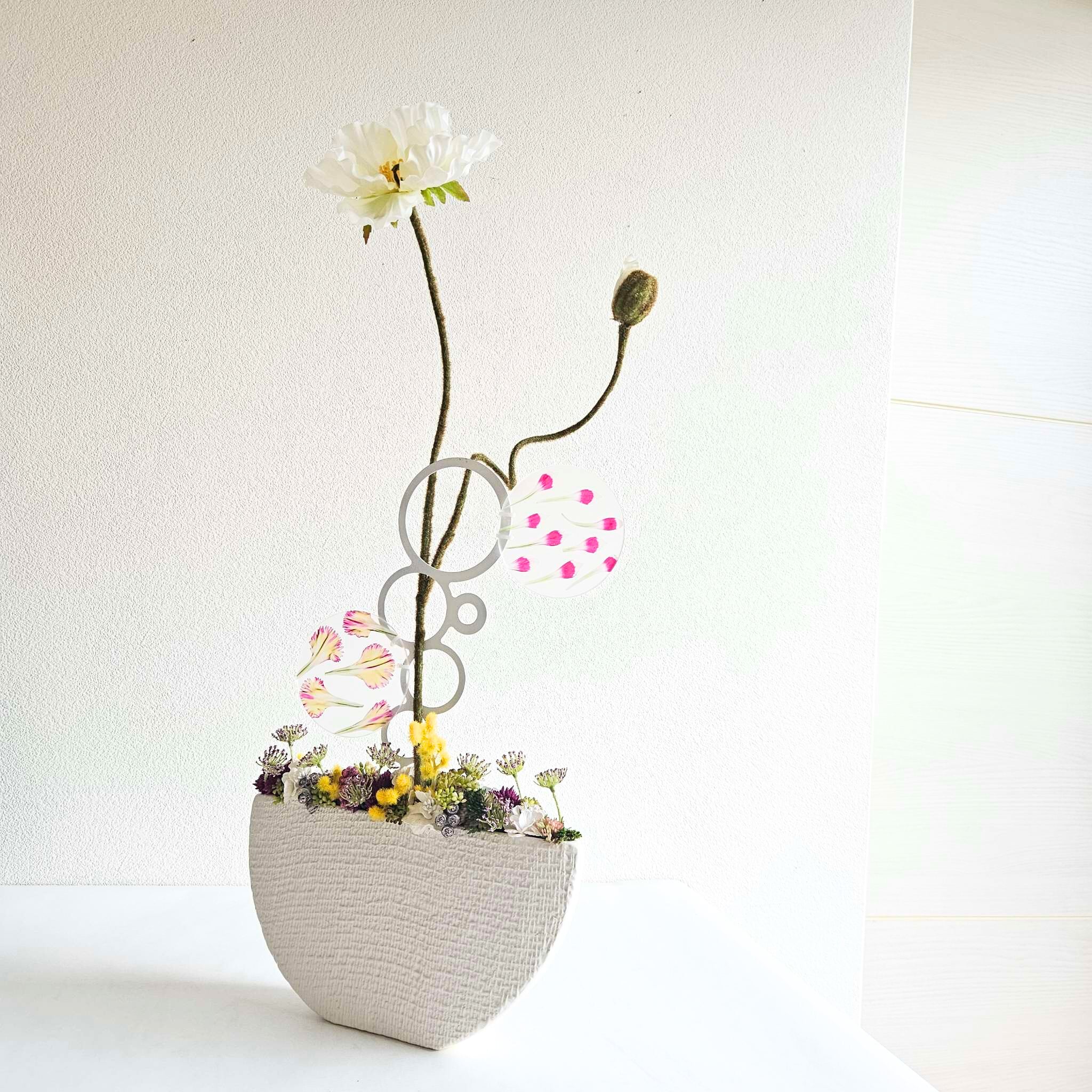 白いポピーとピンクのカーネーションの花びらで爽やかな風をイメージした「風に揺れるPoppy」をお作りしました。