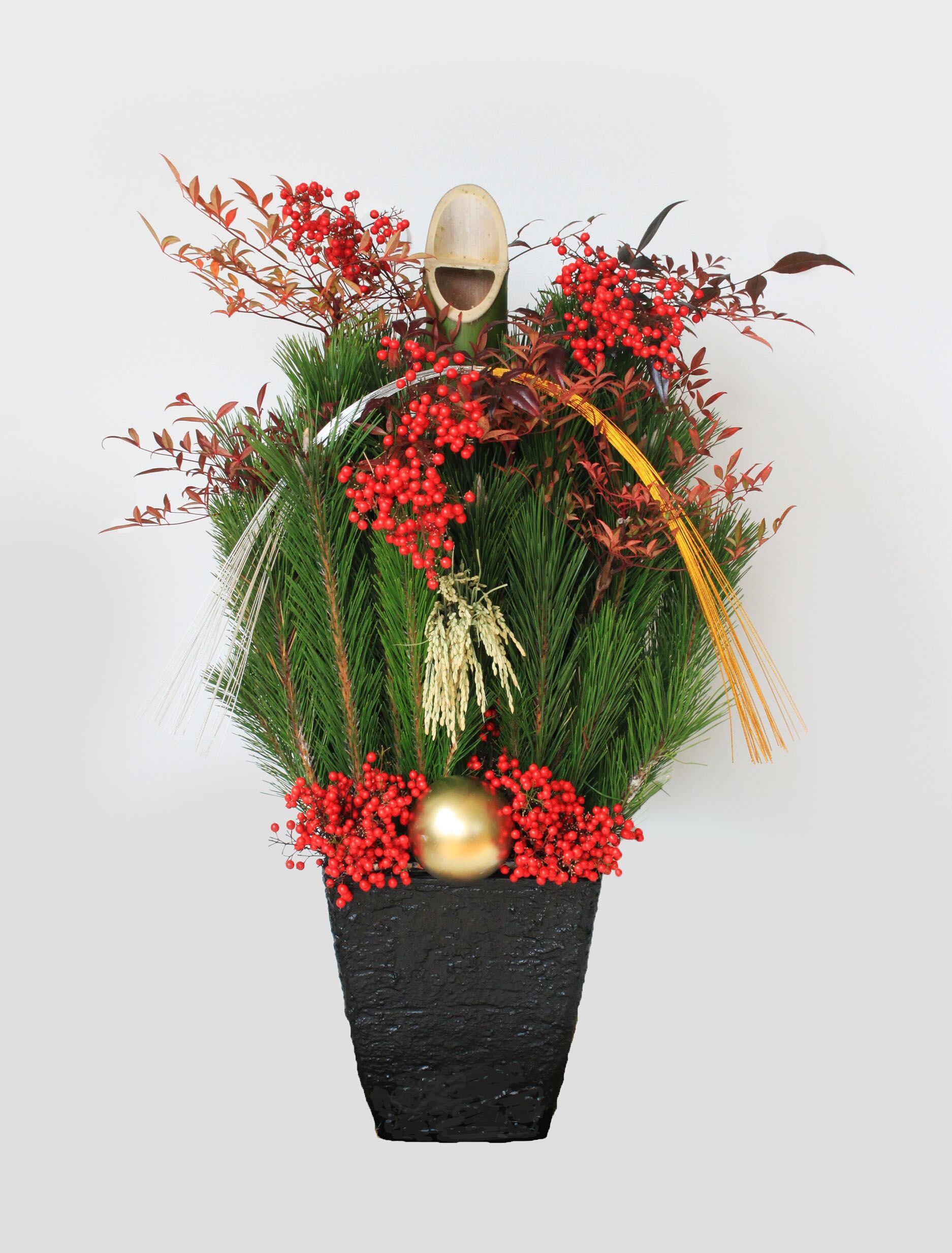 真っすぐに伸びる青竹を中心に、若松や南天・稲穂など縁起の良い植物を組み合わせました。
